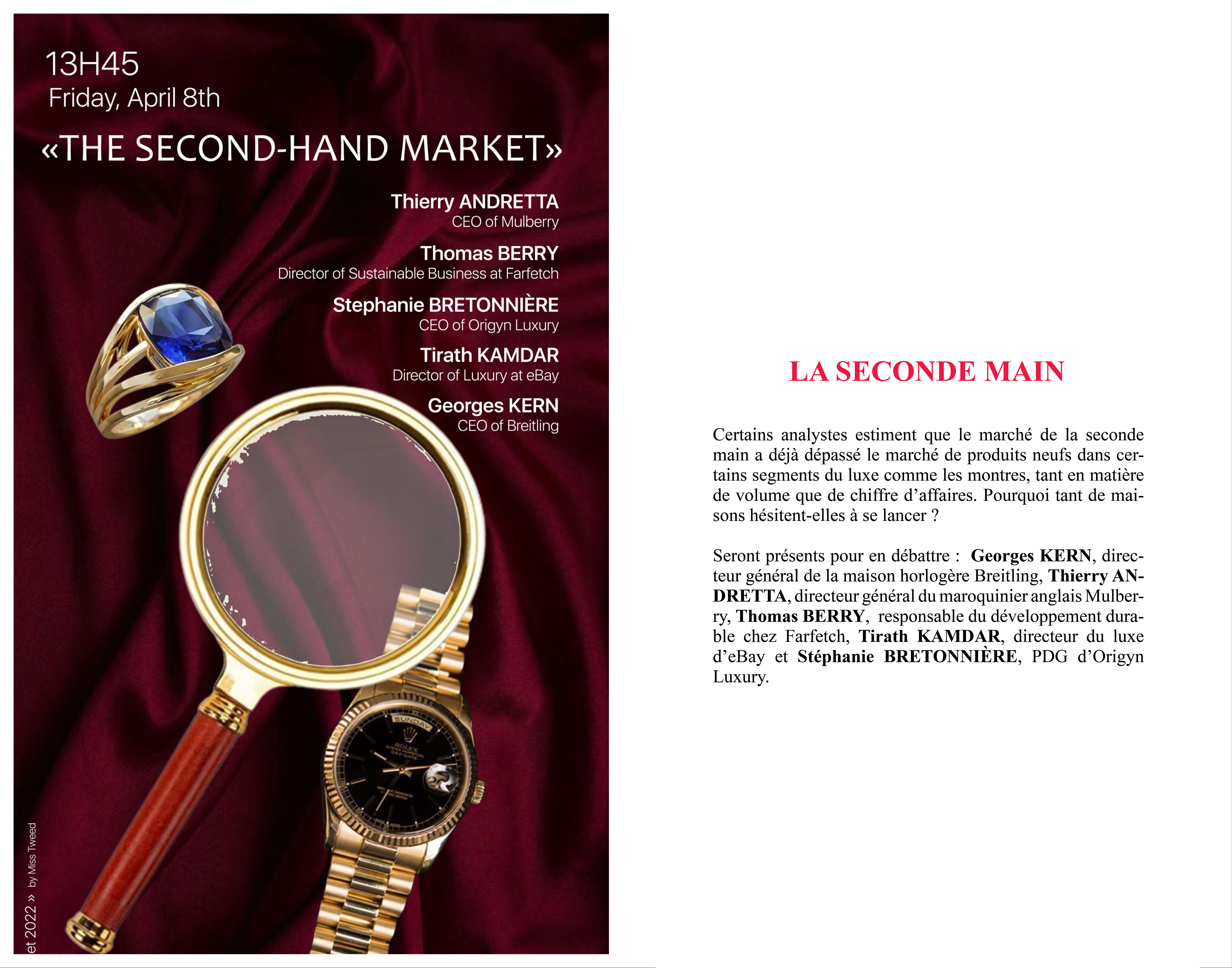 Le luxe du monde de demain est celui que nous sommes en train de construire ensemble : nouveaux acteurs, nouvelles valeurs et nouveaux clients. Au sommet de la montagne à Val d’Isère, à 2 400 mètres d'altitude, nous avons réuni les PDG de Mulberry et de Breitling, le COO de Bulgari, les dirigeants des plateformes Farfetch, Ebay et WatchBox et d’autres personnalités pour discuter de questions telles que l'avenir du marché de l'occasion, de la Chine et des NFT.